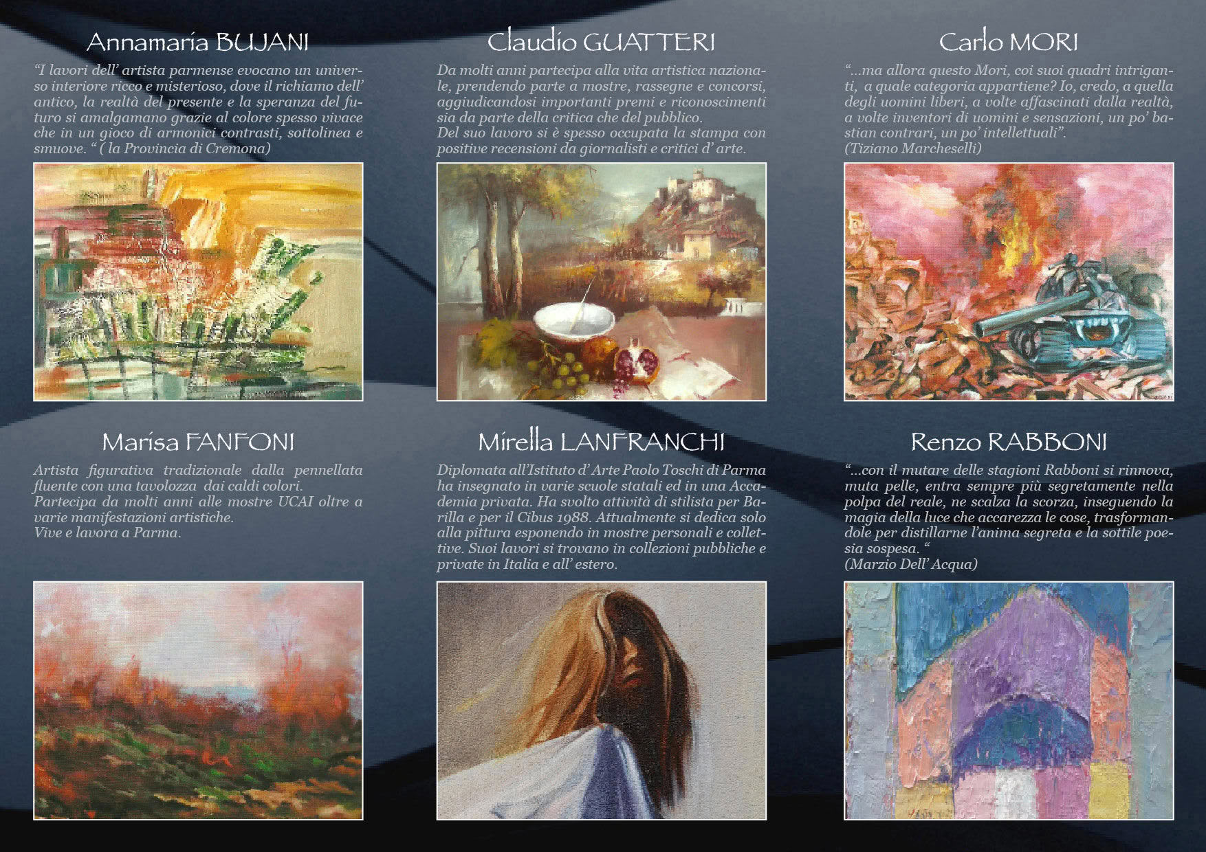 inaugurazione il 18 Febbraio Espositori: Annamaria Bujani Marisa Fanfoni Claudio Guatteri Mirella Lanfranchi Carlo Mori Renzo Rabboni Rino Sgavetta Sauro Tessoni |